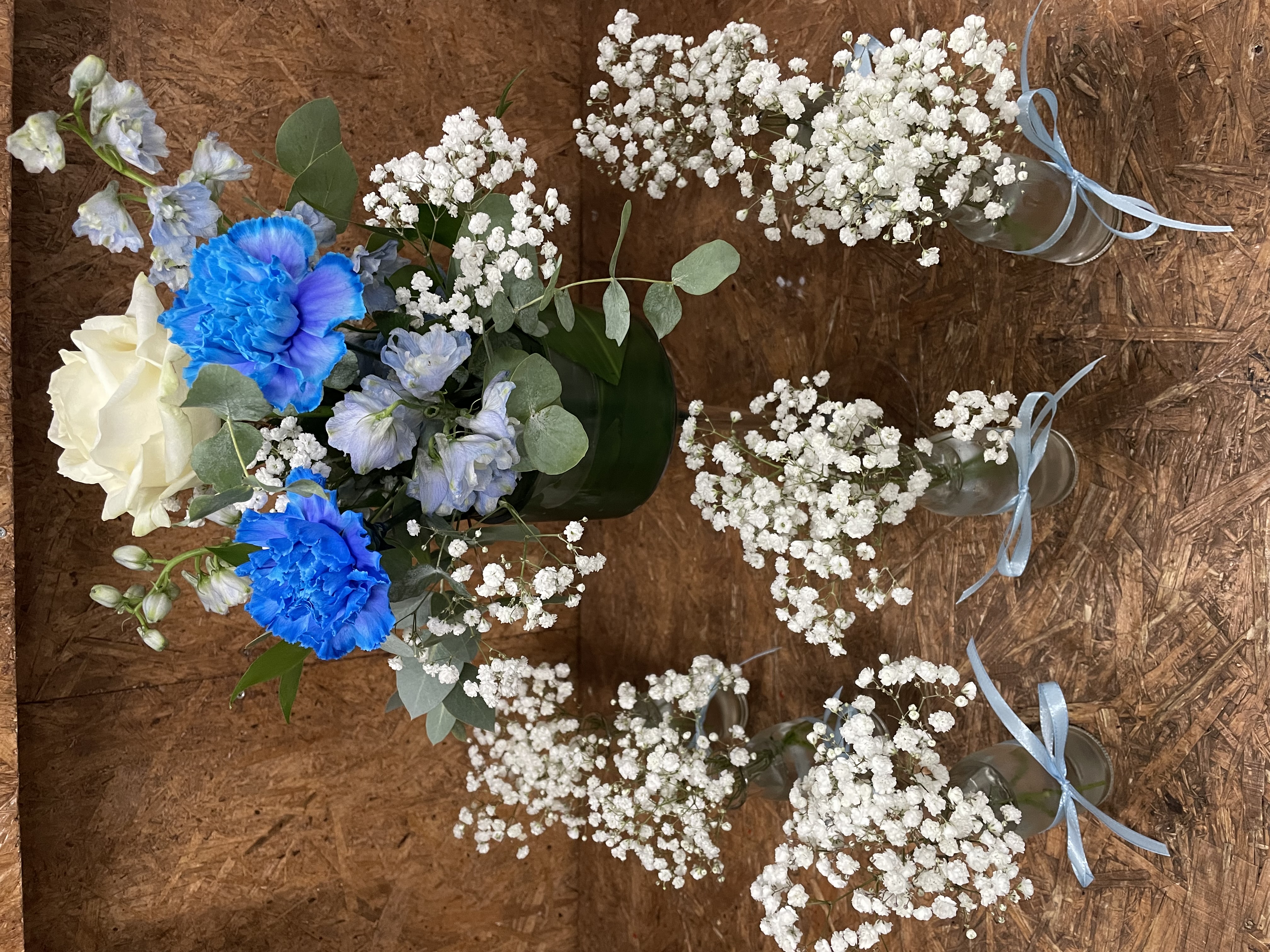 4.Kastejuhlan asetelma ja pienet pöytämaljakot